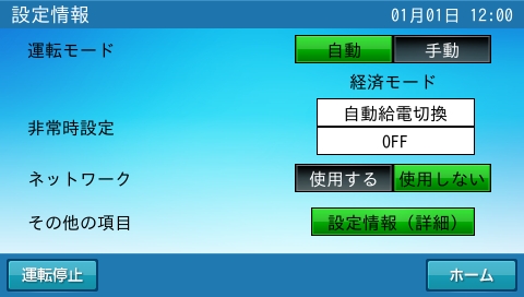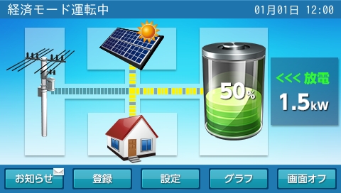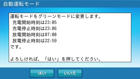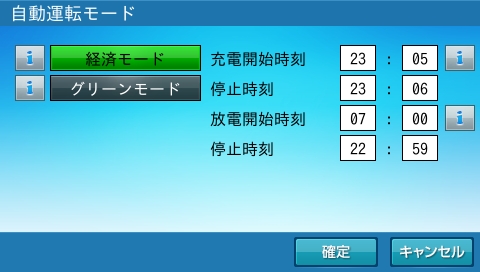 充放電の運転時間は、初期設定で、経済モードでのご使用に適した設定になっています。グリーンモードでのご使用に合わせた時間設定に変更してください。